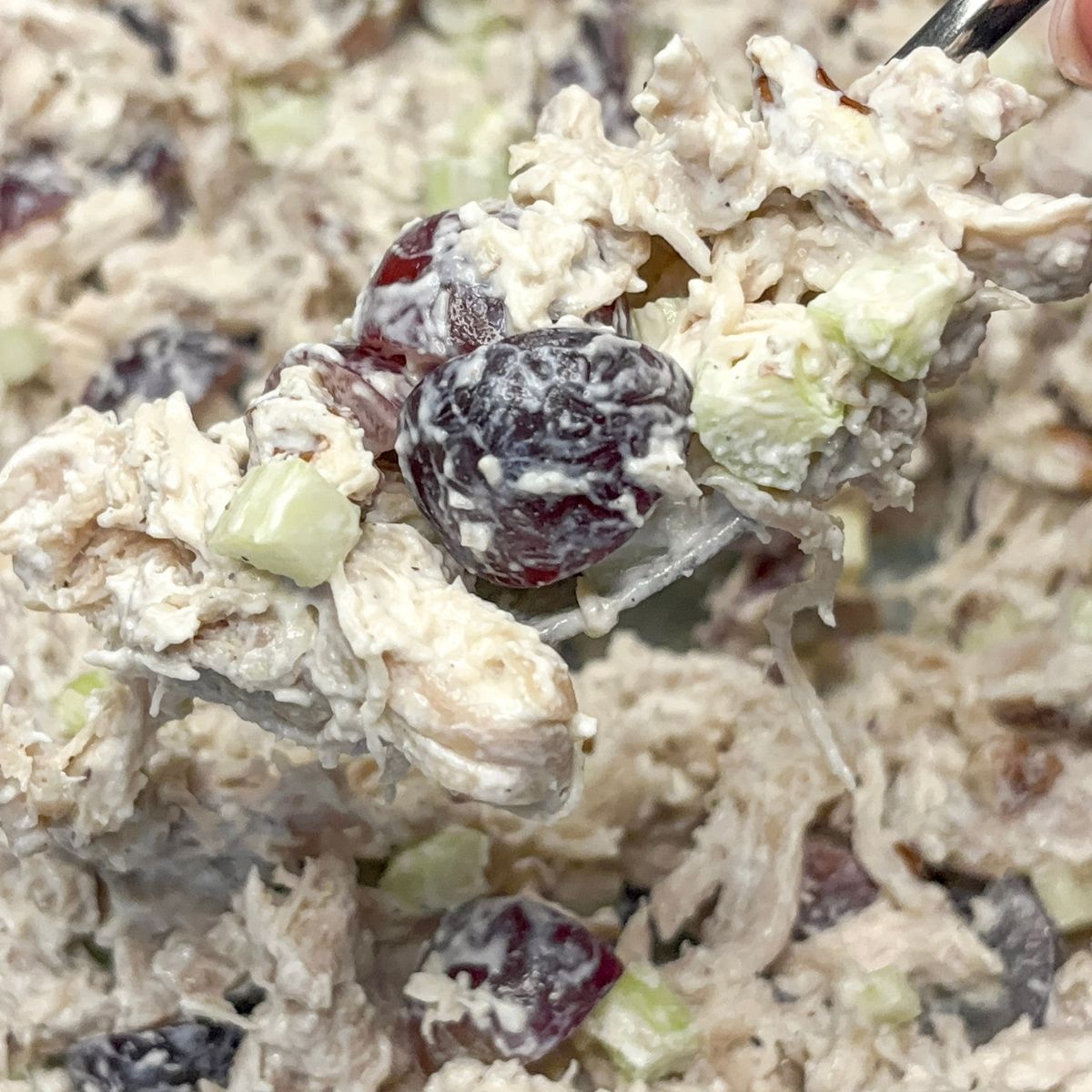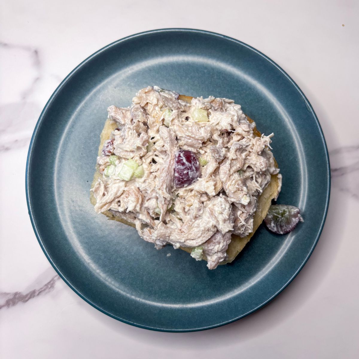 Step 5: Serve the chicken salad on a bed of greens, with a slice of sourdough bread, or in a wrap.