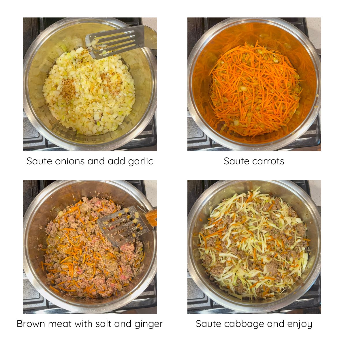 Cabbage. I added freshly shredded cabbage. Store-bought shredded cabbage will make this process easier, and you will not need to prep anything if you are short on time.