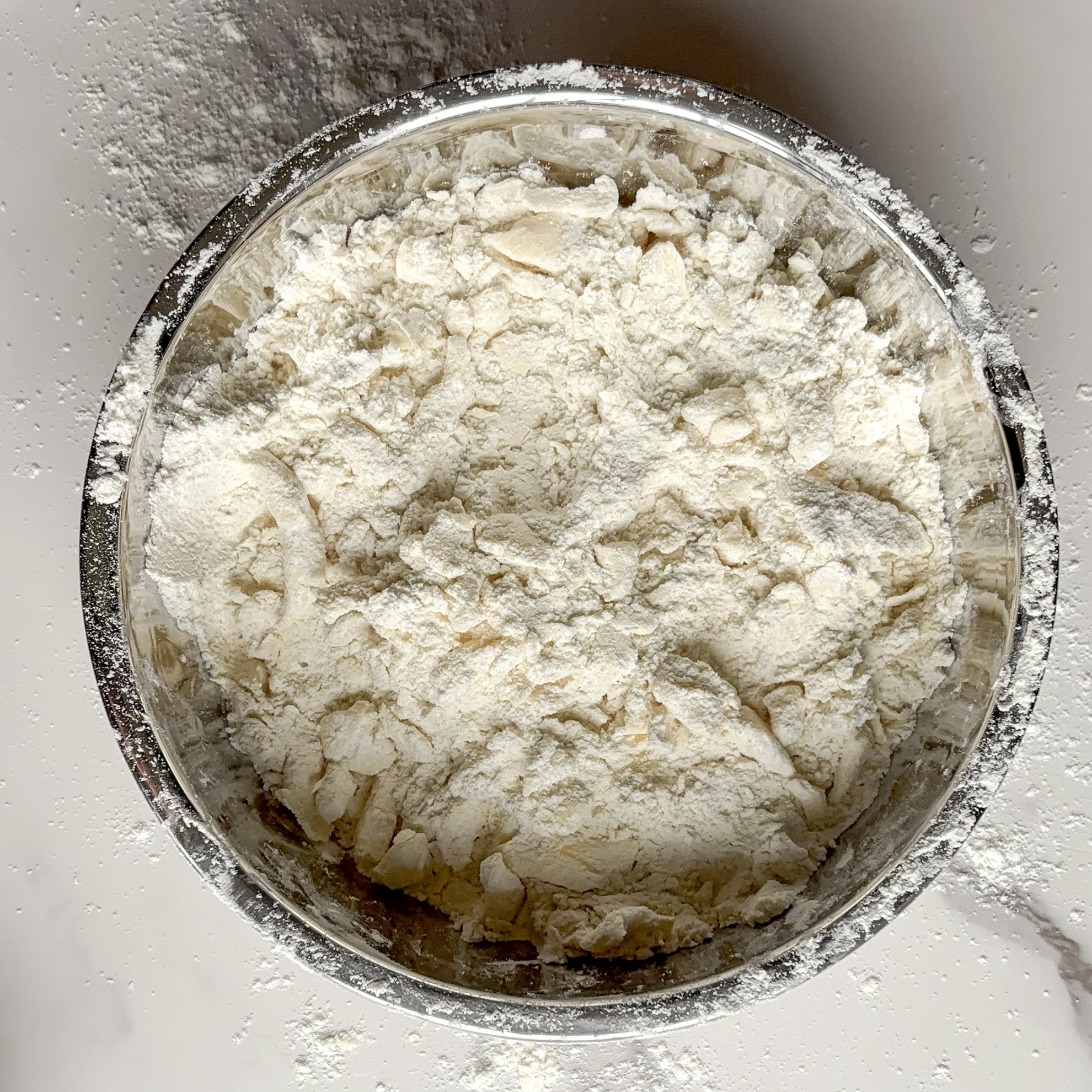 Step 2: Cut cold butter into small cubes. Using a pastry cutter, combine the butter with the flour mixture. You can leave small pieces of butter in the flour.