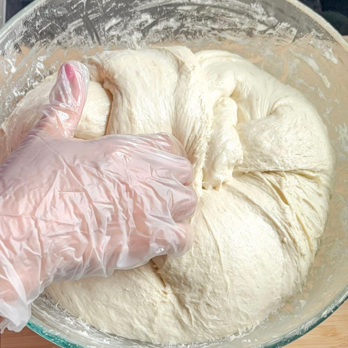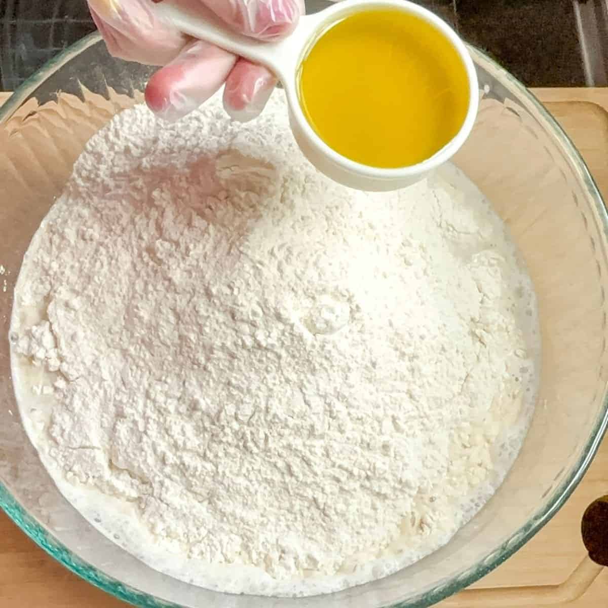 - Add the rest of the oil on top of the dough, and cover the outside to keep it from sticking to the bowl.